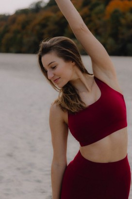 Top z bawełny organicznej to odpowiedź na potrzeby osób, które szukają ubrań do praktyki jogi z naturalnych materiałów. Ma potrójną warstwę biuście, dzięki czemu nie prześwituje. Możesz również włożyć poduszki - w tym celu wszyliśmy specjalne kieszonki. Zapewnia wsparcie na poziomie średnim, a dzięki marszczeniom na boku dopasuje się do biustu, nie spłaszczając go. Dobry również dla większego biustu, wycięcie pod pachą zostało tak skonstruowane, by nic z niego nie uciekało. Miękka guma pod biustem zapewni Ci wygodę i swobodę ruchu. Przyozdobiony z tyłu metką z logo marki. Wraz z legginsami LOTUS tworzy komplet.